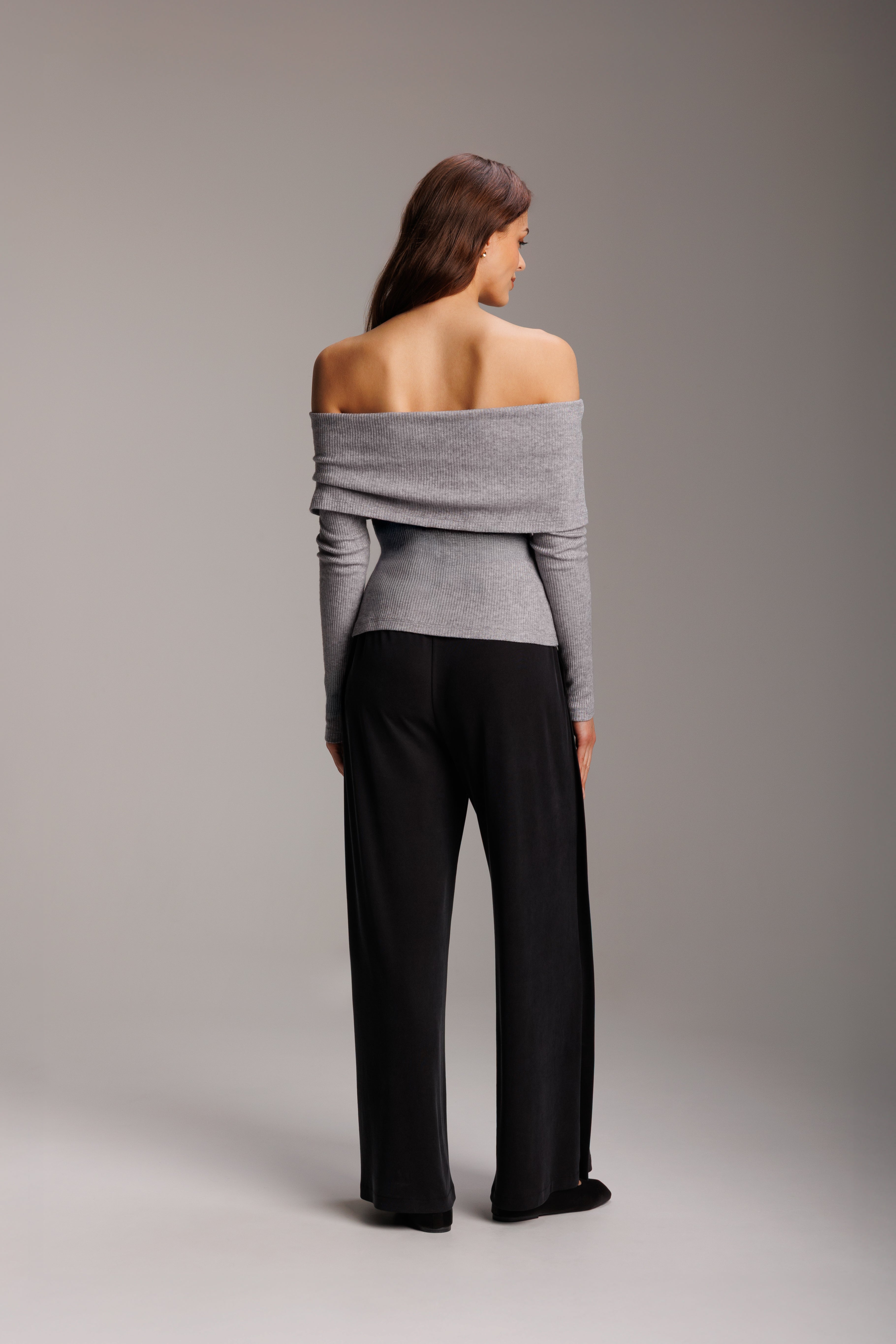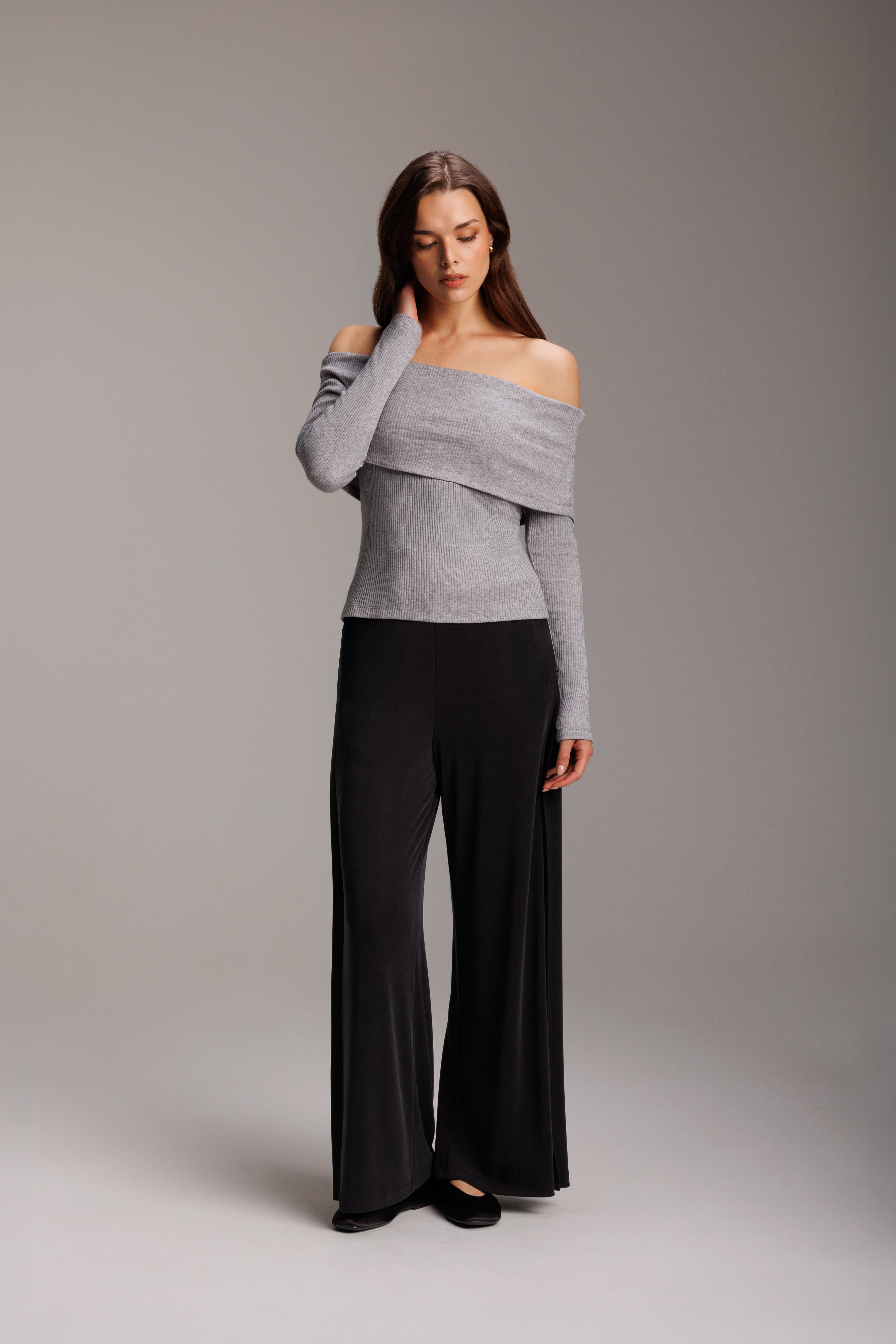 Die Bluse Karmen vereint klassische Form mit einer modernen Interpretation femininer Eleganz. Gefertigt aus geripptem Strickstoff mit dezentem Glanz, fällt sie wunderschön um die Figur und betont die Taille. Ihr markantestes Merkmal ist der breite, fallende Kragen, der Schultern und Ausschnitt umschließt. Er fließt wie eine weiche Linie und betont Hals und Schlüsselbein. Kombinieren Sie dazu dezenten Schmuck und Ihre Lieblingshose oder Ihren Lieblingsrock für einen raffinierten, femininen Look.