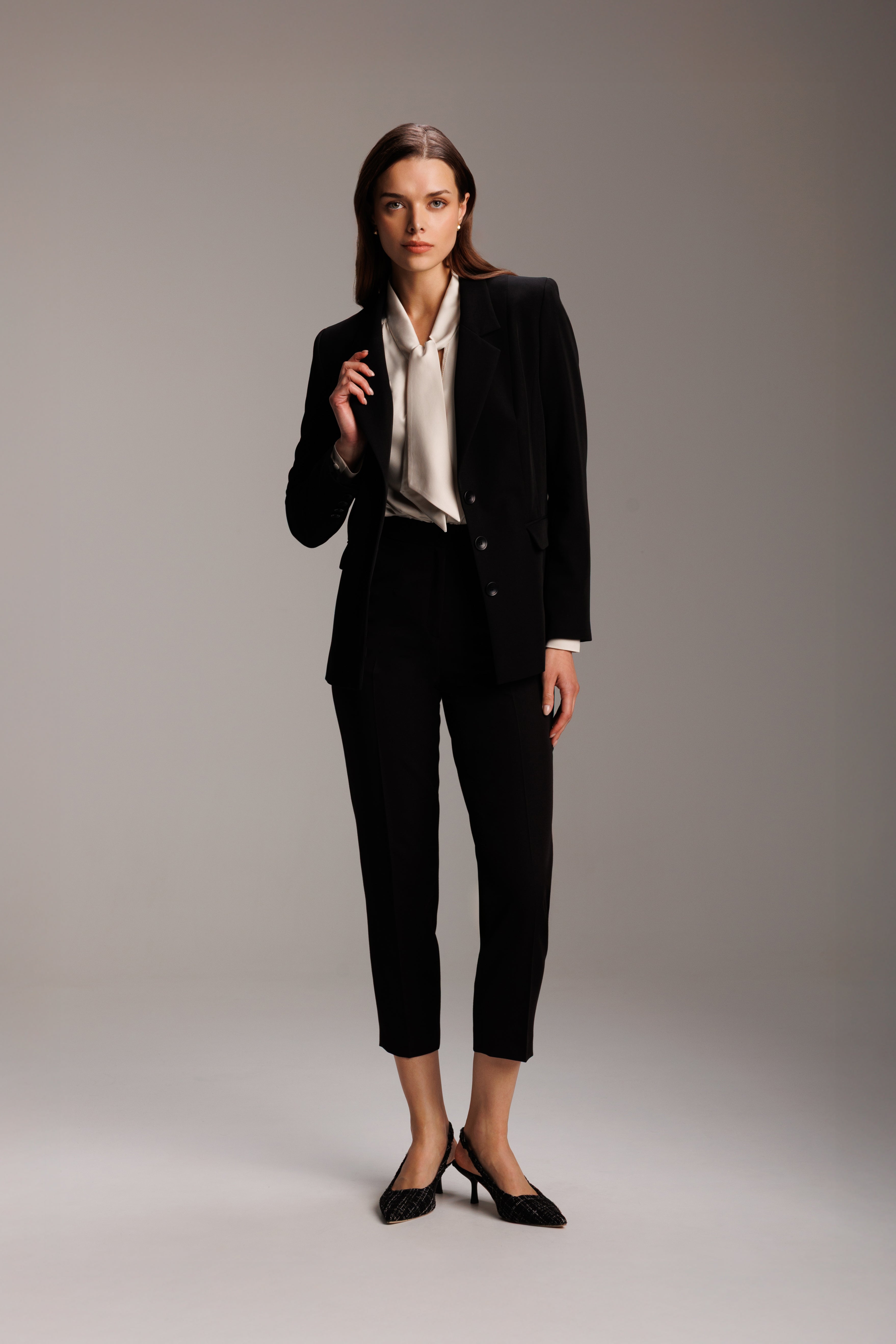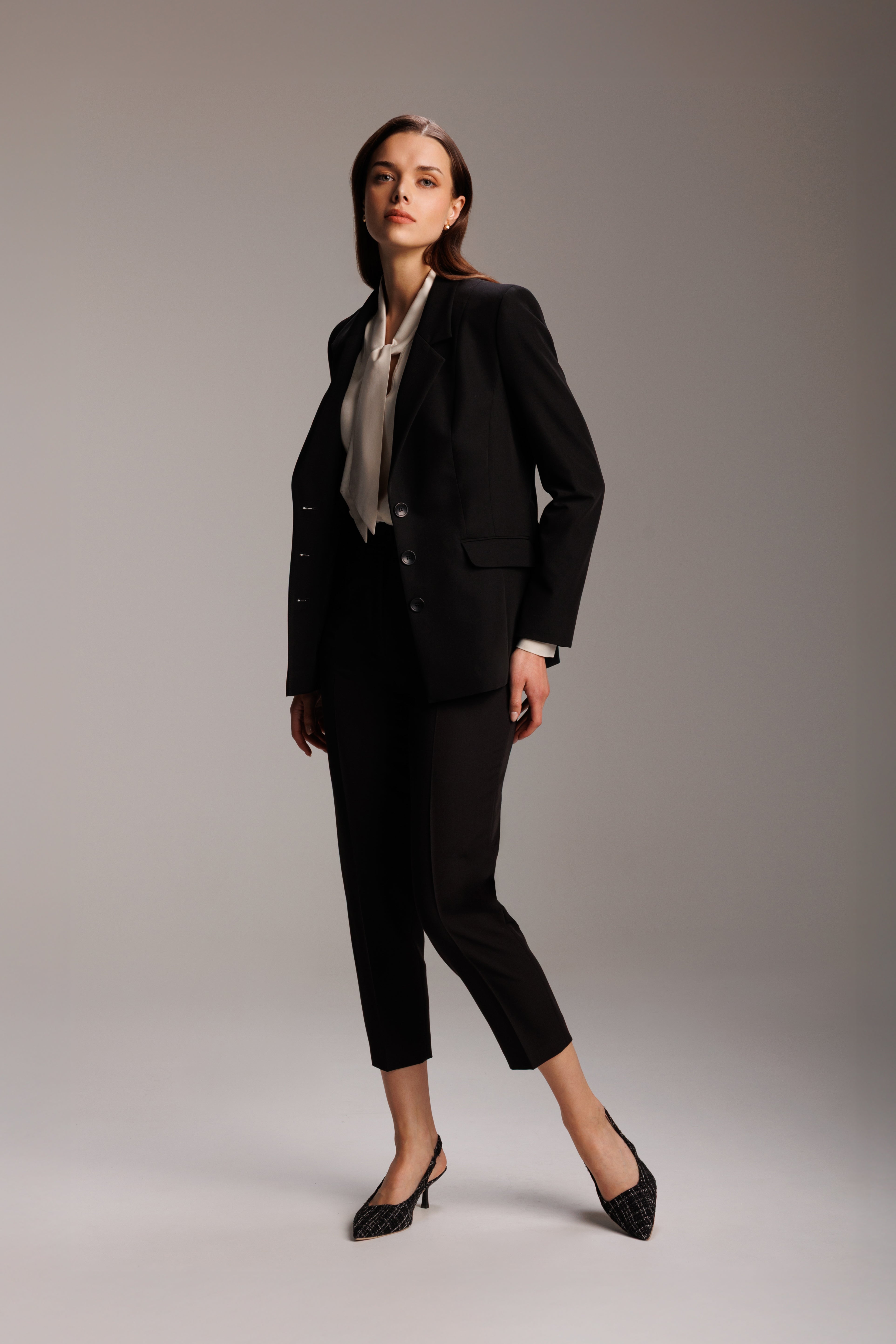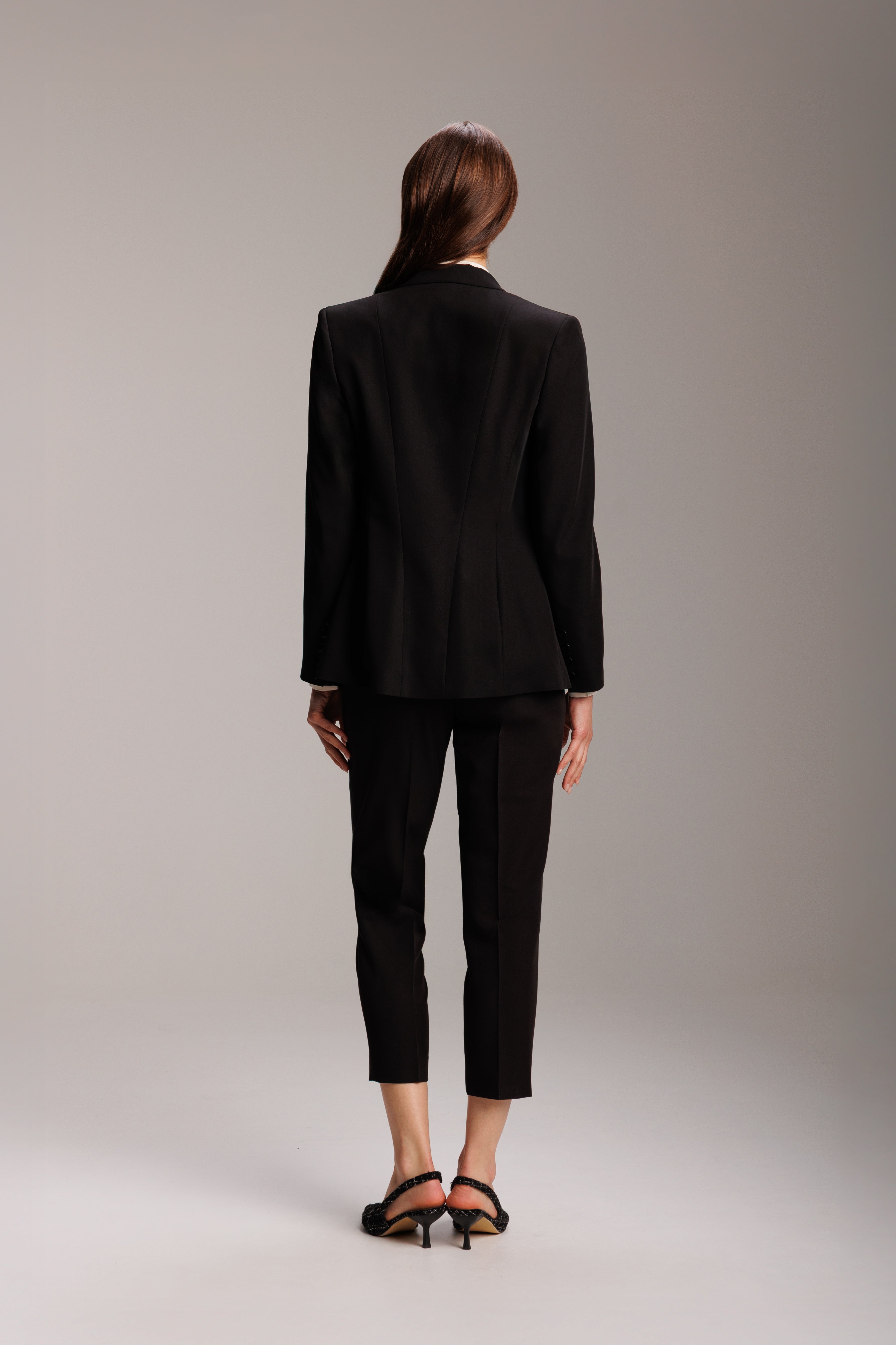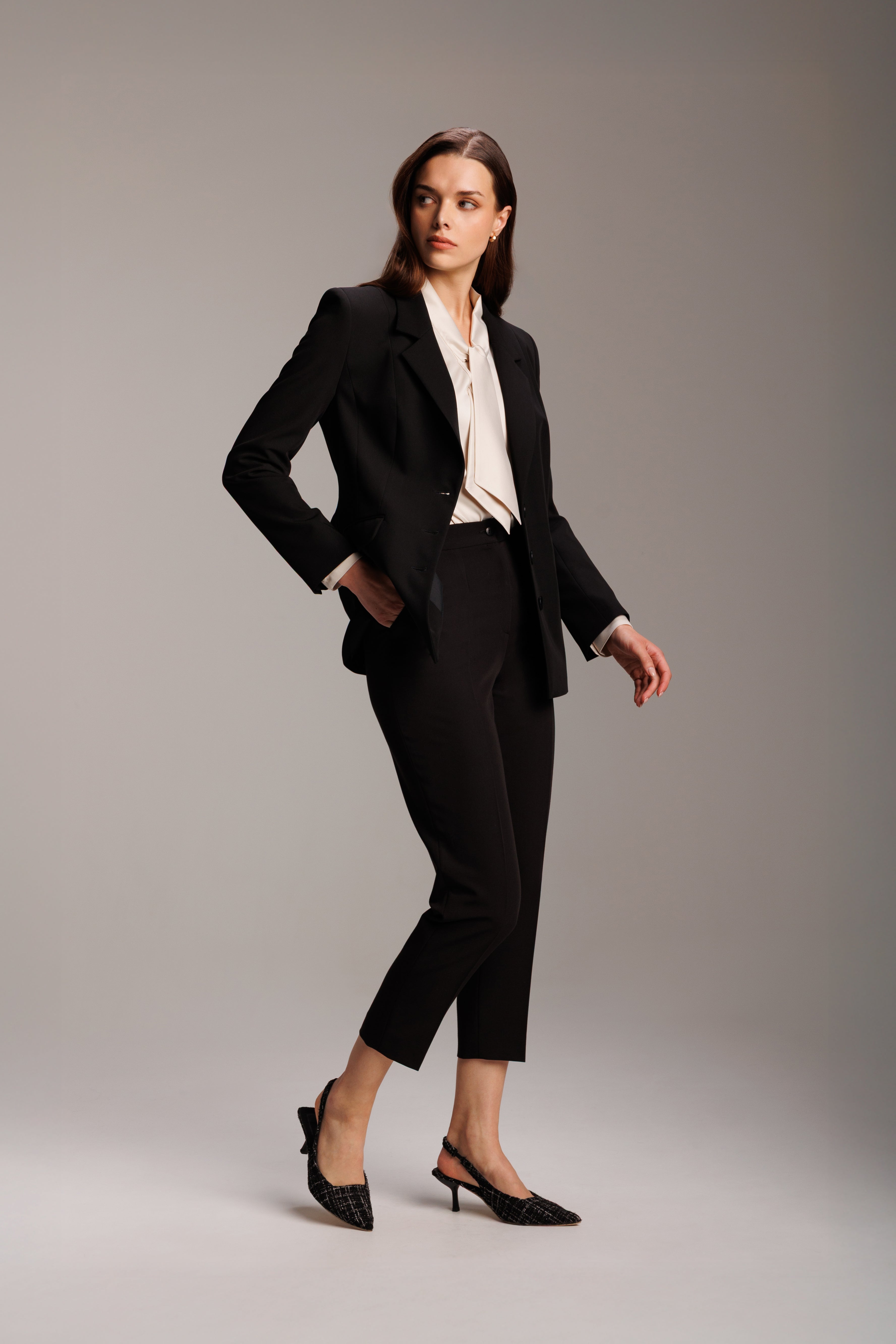 Dank ihrer Form passt die Vesta perfekt zu einer Vielzahl von Outfits, sowohl im Büro als auch abends, und ist ein zeitloses Basic, das immer professionell und edel wirkt. Zusammen mit unserer Hose Nera aus dem gleichen Stoff ergibt sie ein stilvolles Ensemble.