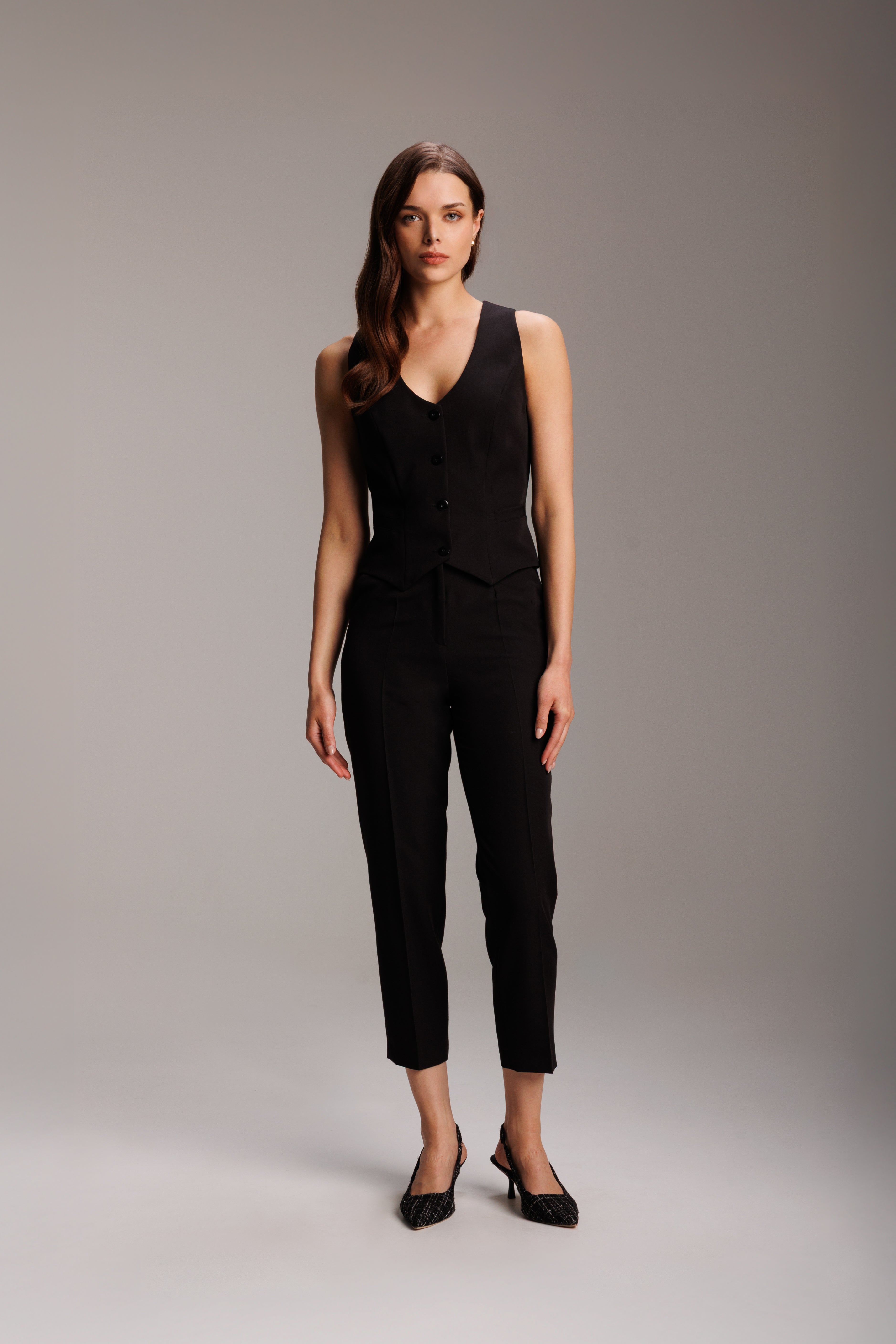 Nera trousers are perfect for business, urban, and evening wear, paired with shirts, tops, and soft sweaters. They pair perfectly with a blazer and loafers, as well as a shirt and delicate ballet flats. They also make a great pair with the Finezza vest, made from the same fabric.
